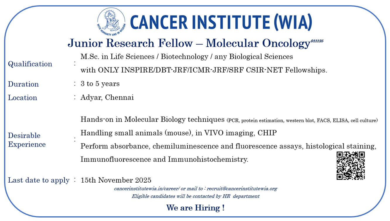 A career in the Cancer Institute (WIA) promises growth in a professional setting and the satisfaction of serving humanity